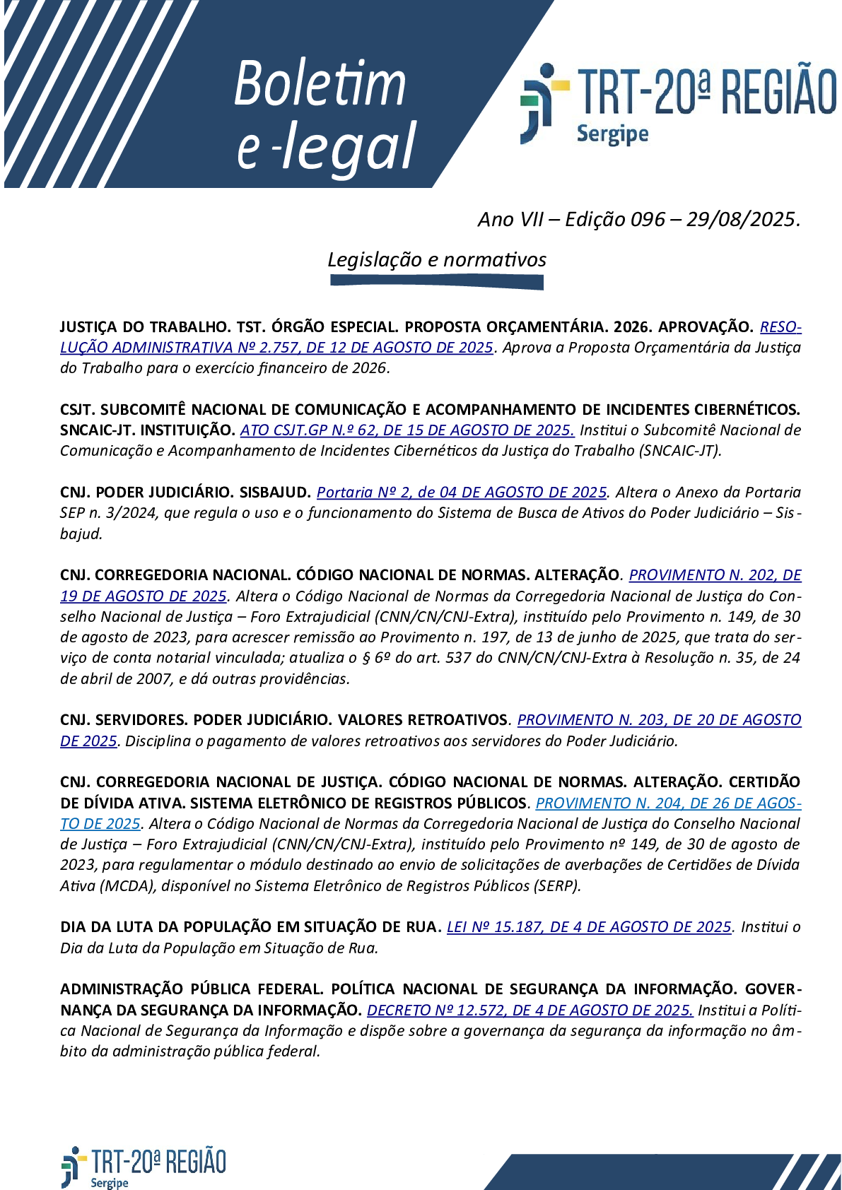 JUSTIÇA DO TRABALHO. TST. ÓRGÃO ESPECIAL. PROPOSTA ORÇAMENTÁRIA. 2026. APROVAÇÃO. RESOLUÇÃO ADMINISTRATIVA Nº 2.757, DE 12 DE AGOSTO DE 2025. Aprova a Proposta Orçamentária da Justiça